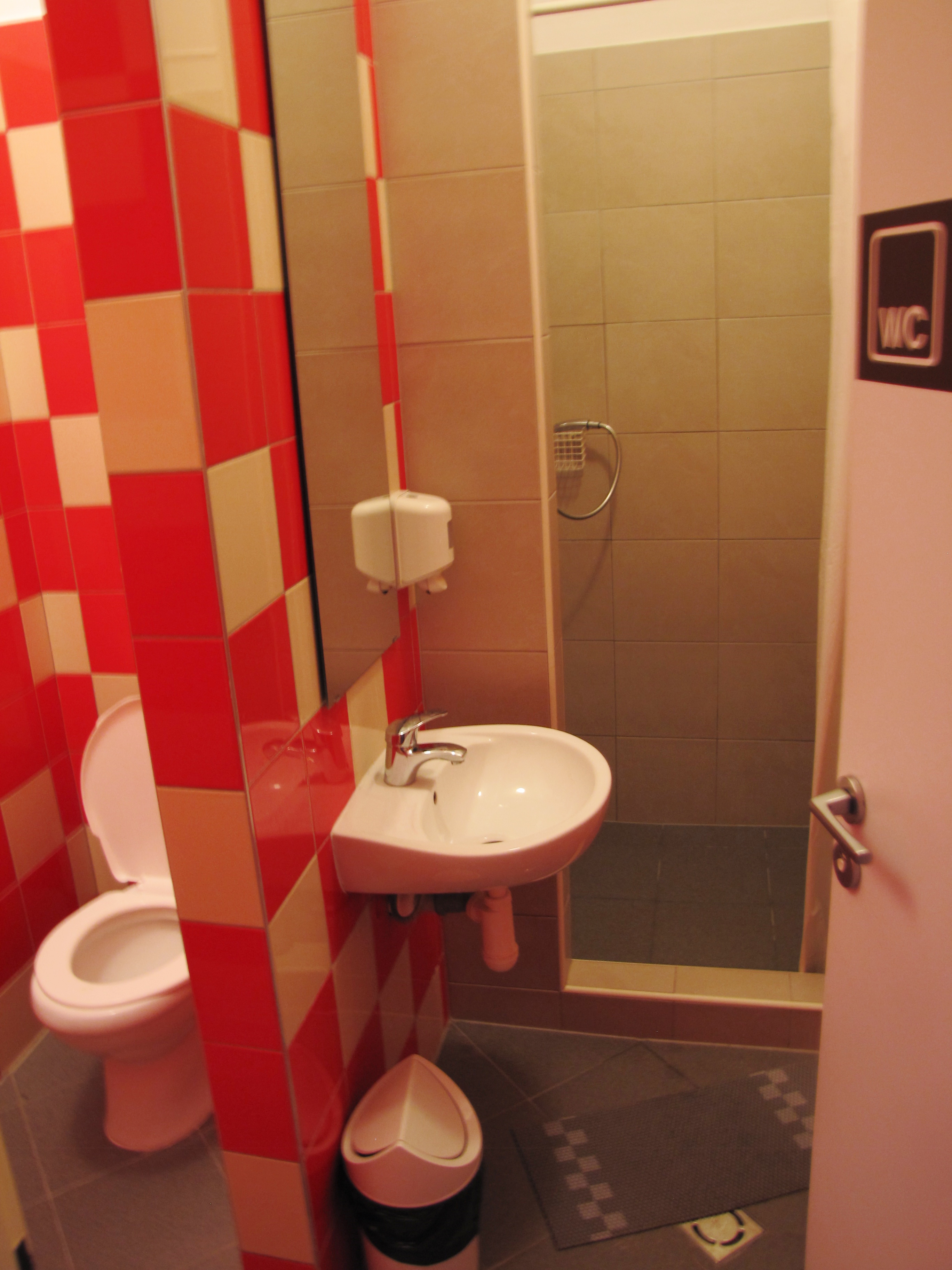 My dorm room was furnished with oak bunkbeds, lockers and red walls bearing silver leaves. The motion-censored hallway lights are a little annoying for epileptics, but the electric sockets, shelves, and lamps next to each bed are practical additions that every backpacker craves.
