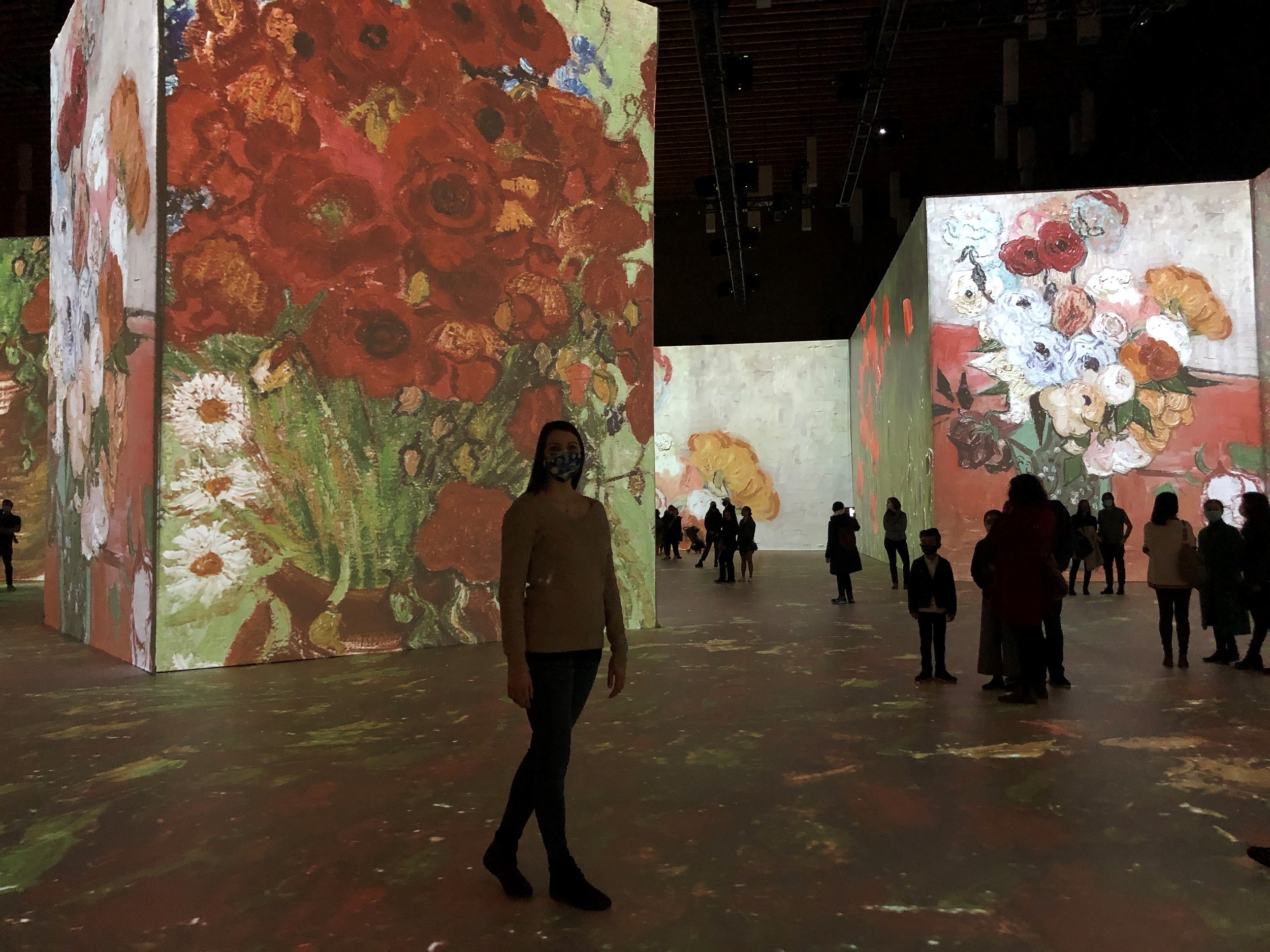 Almost everyone was standing or walking around slowly, taking in the larger-than-life paintings. The projections covered the floor and stretched high along the walls. From every vantage point, you could see two to three different images or parts of a painting. It was an overwhelming, immersive feeling, akin to being inside Van Gogh’s imagination.