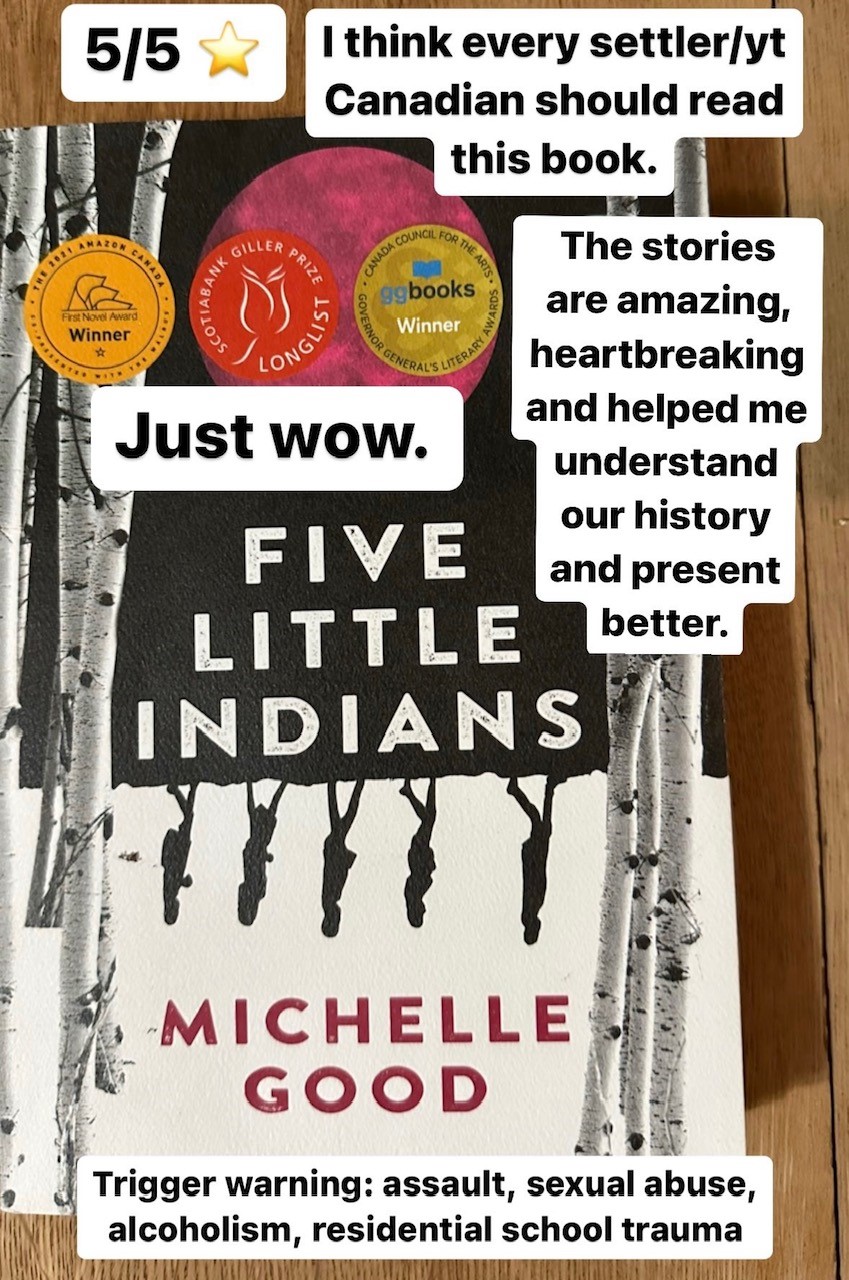 I’ve been meaning to read this book for awhile, so I was delighted when a friend lent me her copy. I felt all the emotions reading this book: happy, sad, encouraged, devastated, angry, hopeful and guilty. Living in Vancouver, I could picture many of the locations, which may have made some of the stories more impactful for me, but I believe every white Canadian would benefit from reading this book. Although it is fiction, the stories are based on real experiences of survivors of the Canadian Indian residential school system.