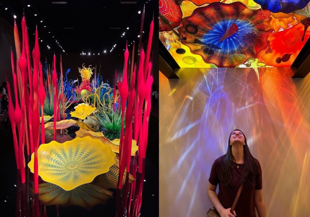 Throughout the museum, we gawked at increasingly detailed, colourful and mind-bending glass artwork. I stood beneath misshapen disks, lit from above to cast an eerie, underwater-like glow on visitors. Outside in the garden, the magic continued—we stood next to glass structures as tall as trees, looking like something out of Dr. Seuss’ imagination.