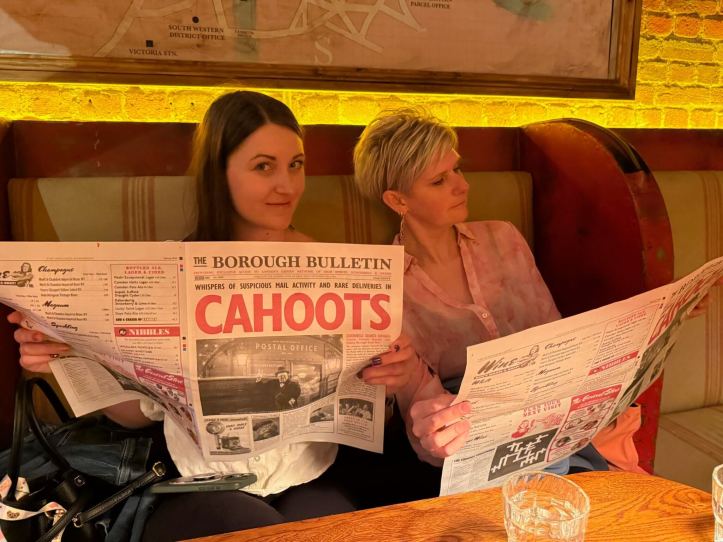 We celebrate Adam’s birthday at Cahoots Underground. Located in an abandoned tube station, follow the inconspicuous opening down through the tunnels to a lively bar. Musicians take requests, and the bartender even presents us with free birthday shots. While it’s simply too loud for me to enjoy with my hearing loss and tinnitus on a Saturday night, I can image how some people would love this spot.
