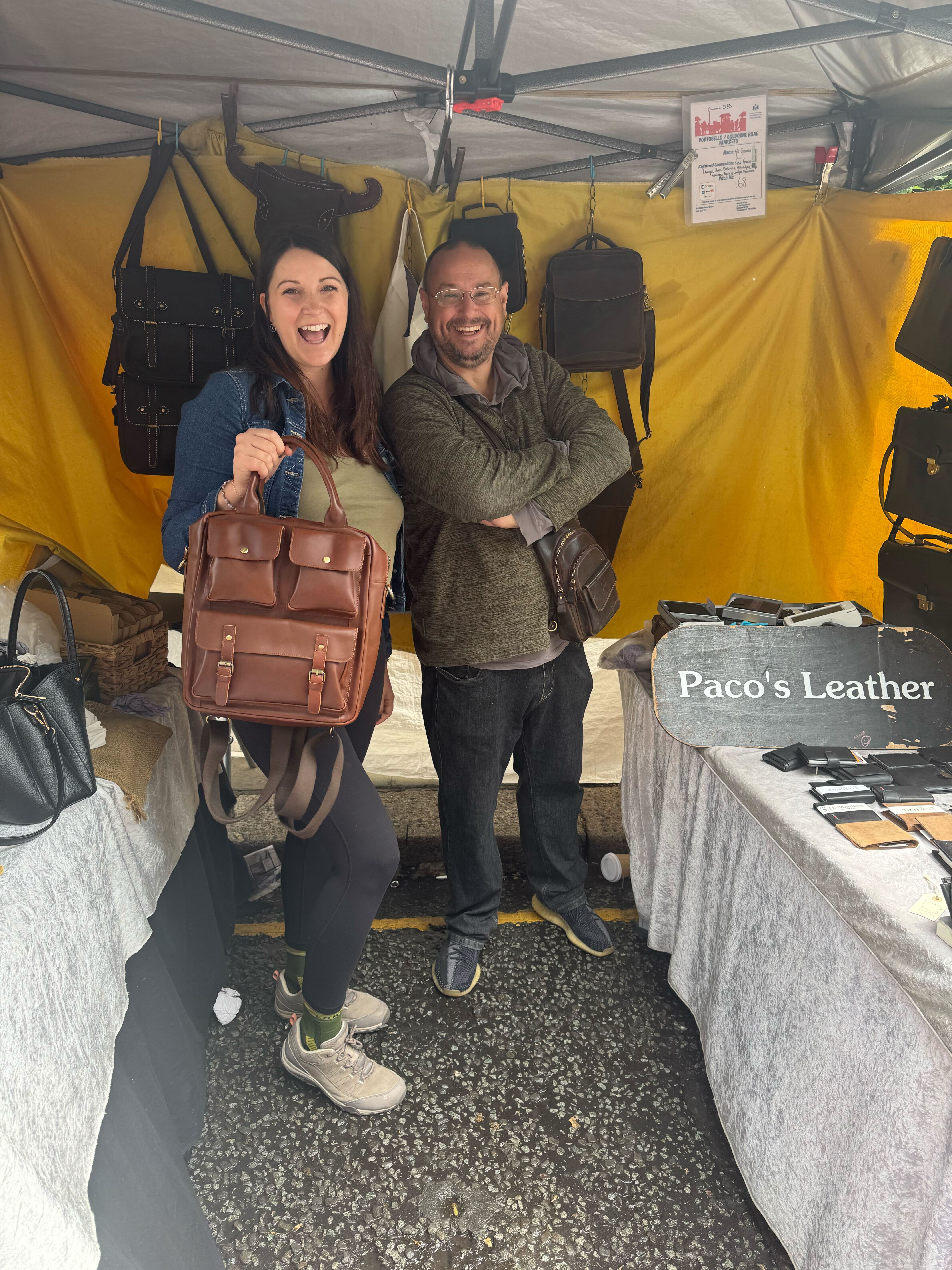 We also venture to Portobello Market in Notting Hill, which dates back to the 1860s. Jewelry, crafts, books, knick-knacs, bric-a-brac and vintage wear abounds, mainly for astronomical prices. We wander through light rain, and I meet a man named Paco who creates leather goods. I’d been looking for a convertible backpack that doubled as a purse, and I’m delighted to find it here. The beautiful brown bag smells strongly of leather and features a stamp with “Paco’s Leather – London” on the interior. It’s a perfect souvenir. The rest of the market is frighteningly busy; I feel overwhelmed by the sheer amount of people on the streets and pass by the stalls in a daze.