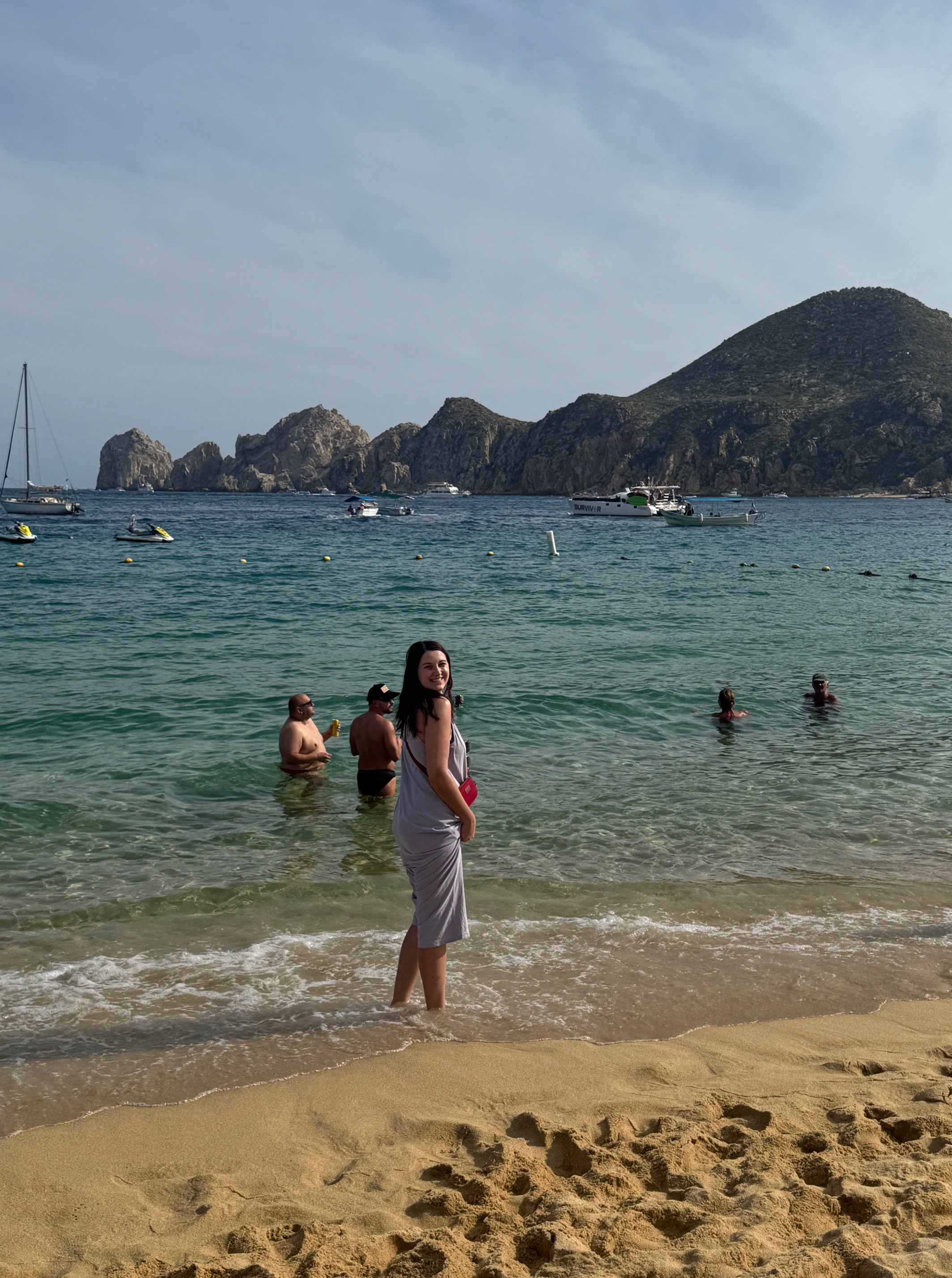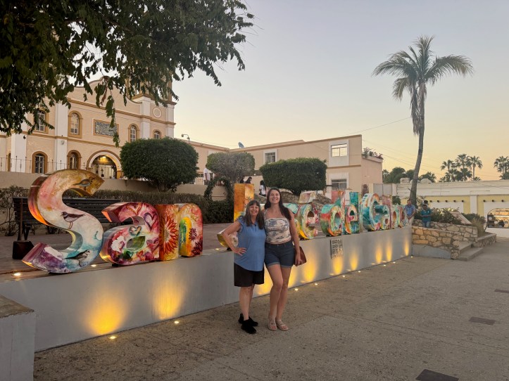 We went into San Lucas to explore. I thought I wouldn’t go into the ocean, because the waves are very strong and I am not a good swimmer, but I wore my bikini underneath my onesie just to look cute. When we arrived, the water was calm, so I stripped off my jumpsuit and ran into the water at El Medano Beach. I swam in the warm salty waves, laughing and chatting with fellow travellers from Texas.