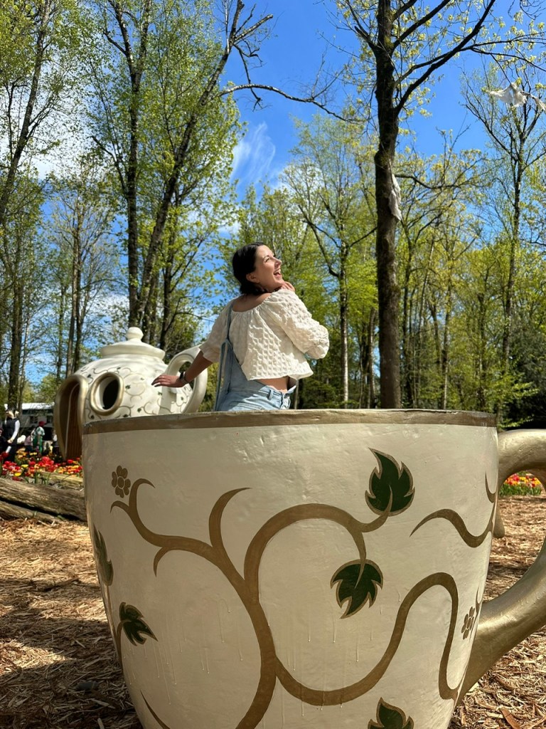 On-site, you’ll find ample activities for kids: a bubble hut, play fort, jumping pillow, climbing wall, paintball and trike racing track, to name a few. Inside the Tulip Forest are perfectly curated photo-ops. Rather than rows of one colour, you’ll find carefully planted clusters in front of a massive teapot, mushroom house and bee house.
